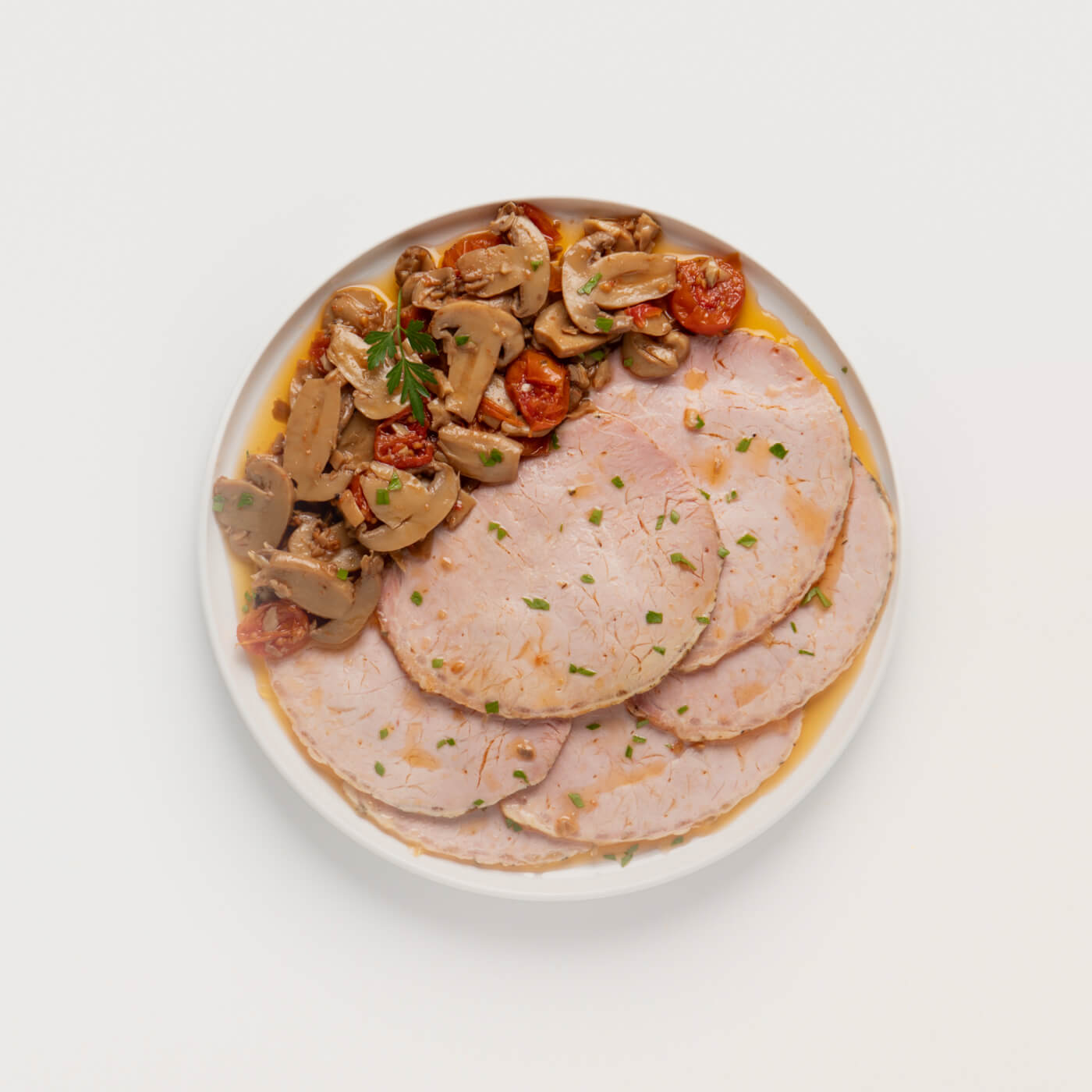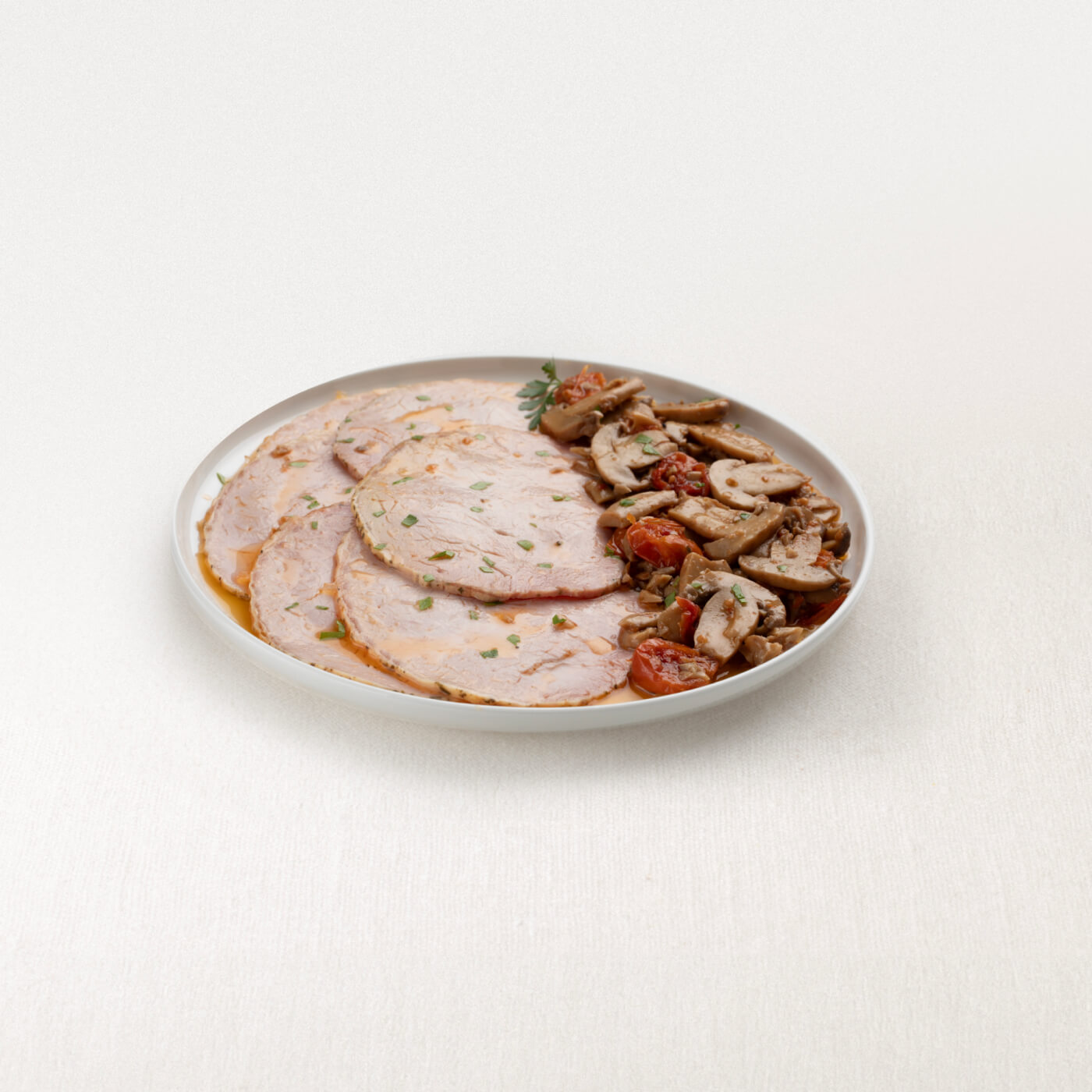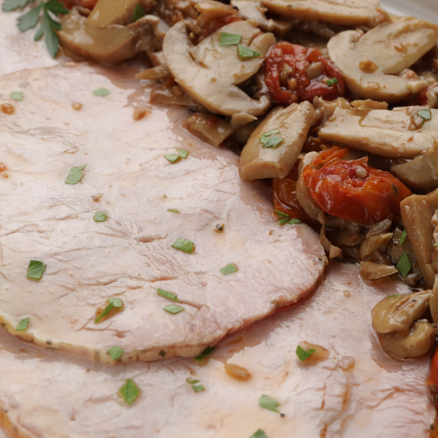 L’arista funghi e pomodorini è un prodotto a base di Arista di maiale cotta arrosto, affettata e condita con funghi e pomodorini.