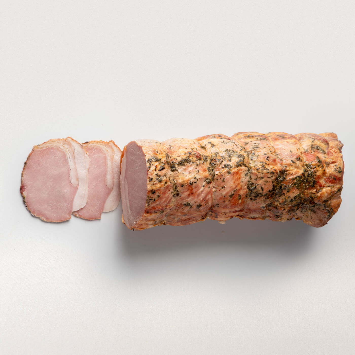Filone di maiale lavorato a mano e cotto arrosto a bassa temperatura con tutta la cotenna ed il lardo originale. Privo di fonti di glutine, polifosfati, glutammato e proteine del latte, il Rustico è adatto per